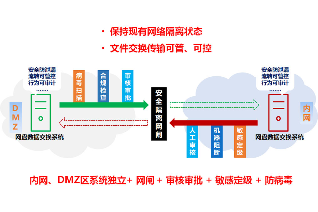 打造企業全網安全文件共享協同工作空間,提升企業協同能力。強化文件安全管控,對文件內部的共享協同,跨網傳輸,對外分發等流轉行為提供靈活細致的管理。